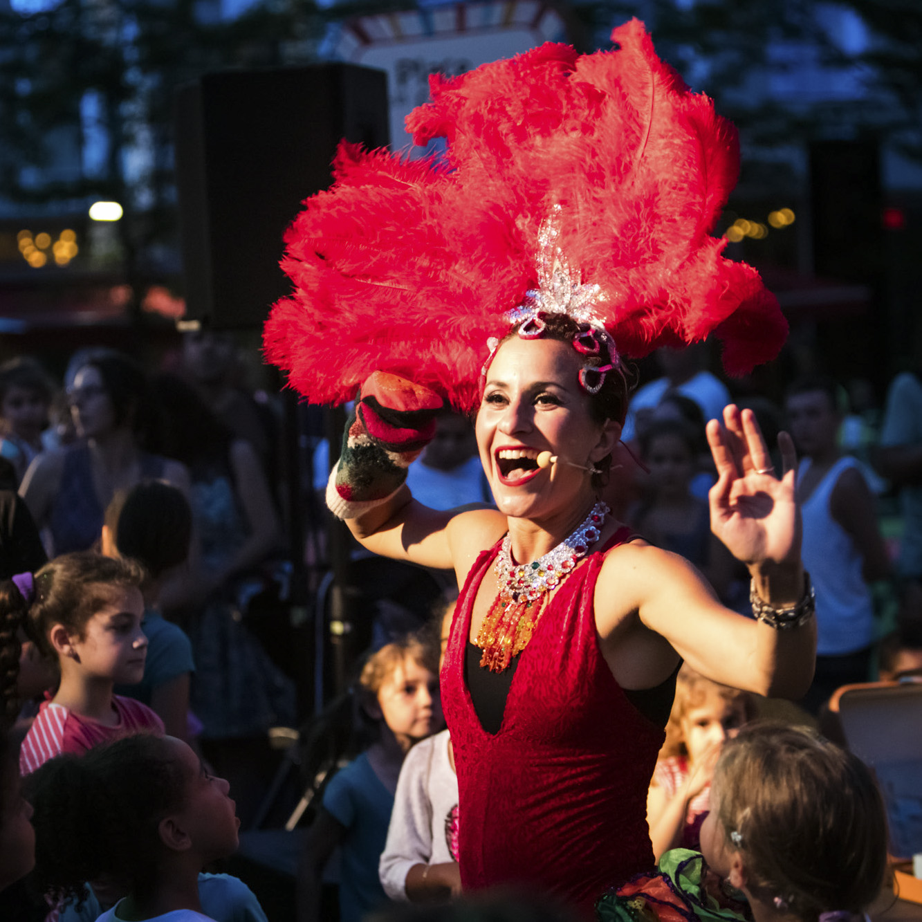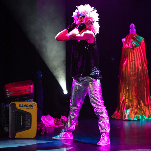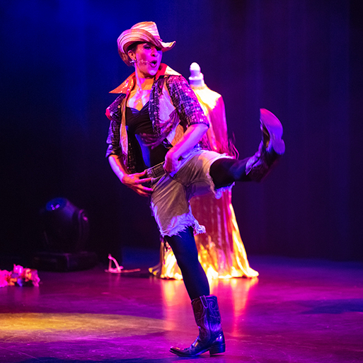 Eh bien, un vent de magie souffle sur l’empilade de coffres et de malles qui s’ouvrent les unes après les autres. Tout à coup, les rythmes s’emballent pour créer un spectacle électrisant, une course folle où les métamorphoses se succèdent, nous invitant par l’occasion à pénétrer des univers plus colorés les uns que les autres. Du Charleston au Gumboot en passant par le Bollywood et la Samba, Fifi bric-à-brac nous offre ses carnets de voyage teintés de poétiques pirouettes et d’arabesques abracadabrantes. Une aventure grisante qui décoiffe et dégourdit, pour le plaisir des grands et des petits !