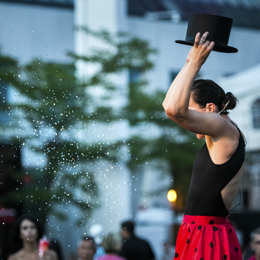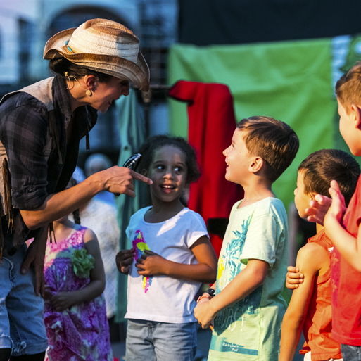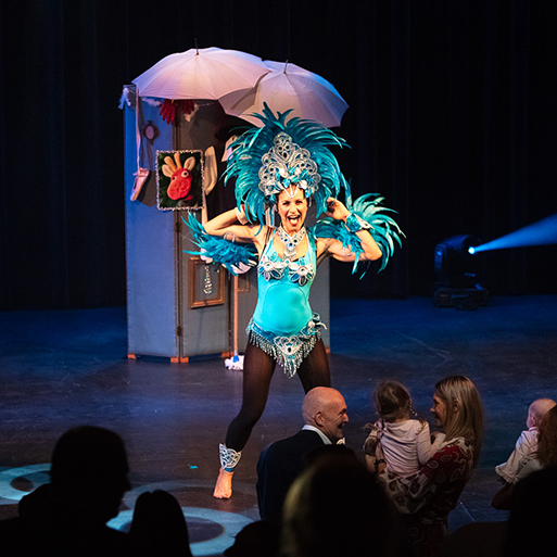 Eh bien, un vent de magie souffle sur l’empilade de coffres et de malles qui s’ouvrent les unes après les autres. Tout à coup, les rythmes s’emballent pour créer un spectacle électrisant, une course folle où les métamorphoses se succèdent, nous invitant par l’occasion à pénétrer des univers plus colorés les uns que les autres. Du Charleston au Gumboot en passant par le Bollywood et la Samba, Fifi bric-à-brac nous offre ses carnets de voyage teintés de poétiques pirouettes et d’arabesques abracadabrantes. Une aventure grisante qui décoiffe et dégourdit, pour le plaisir des grands et des petits !
